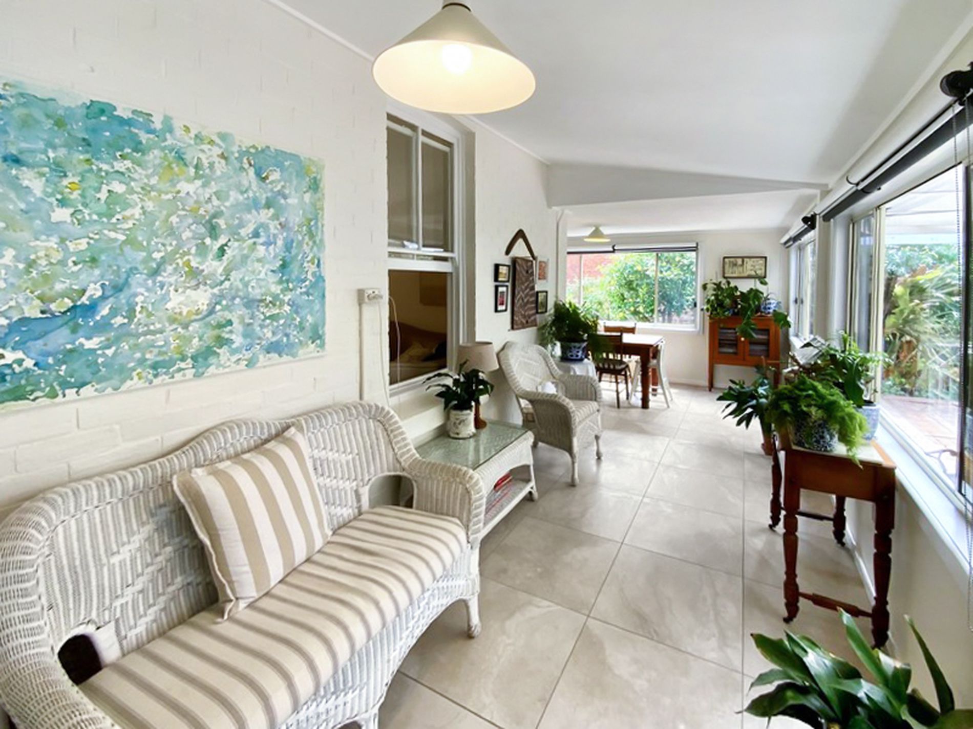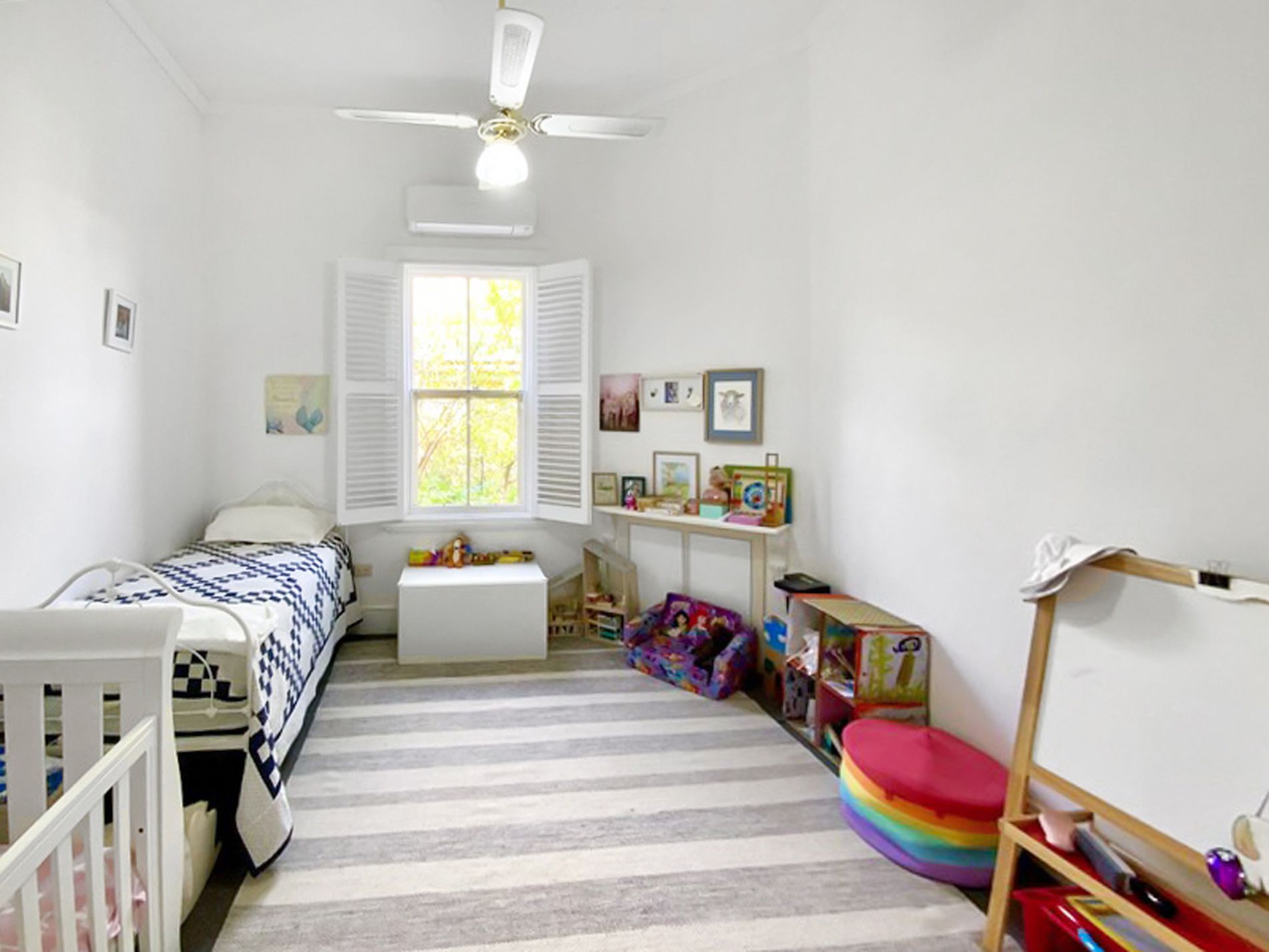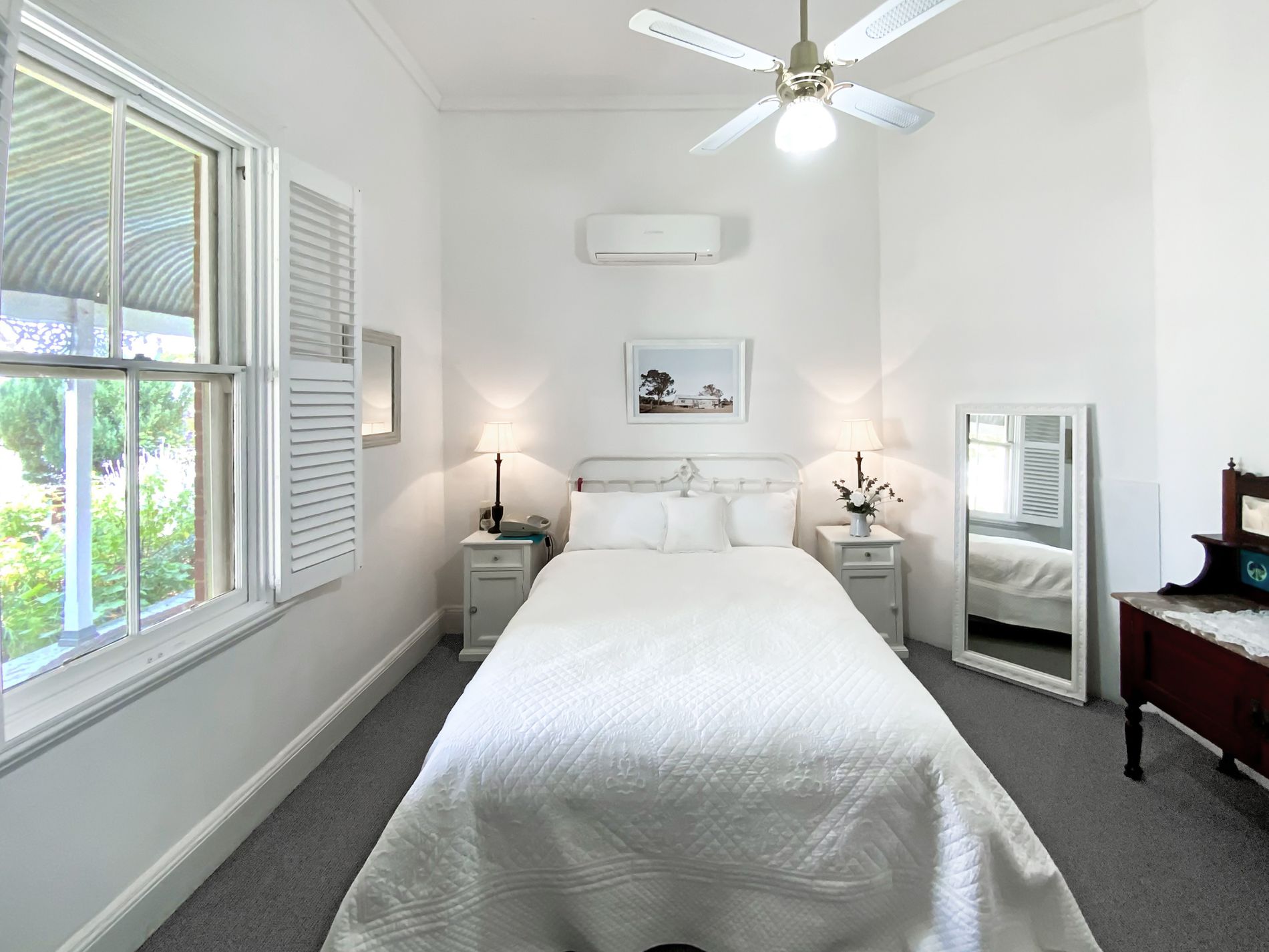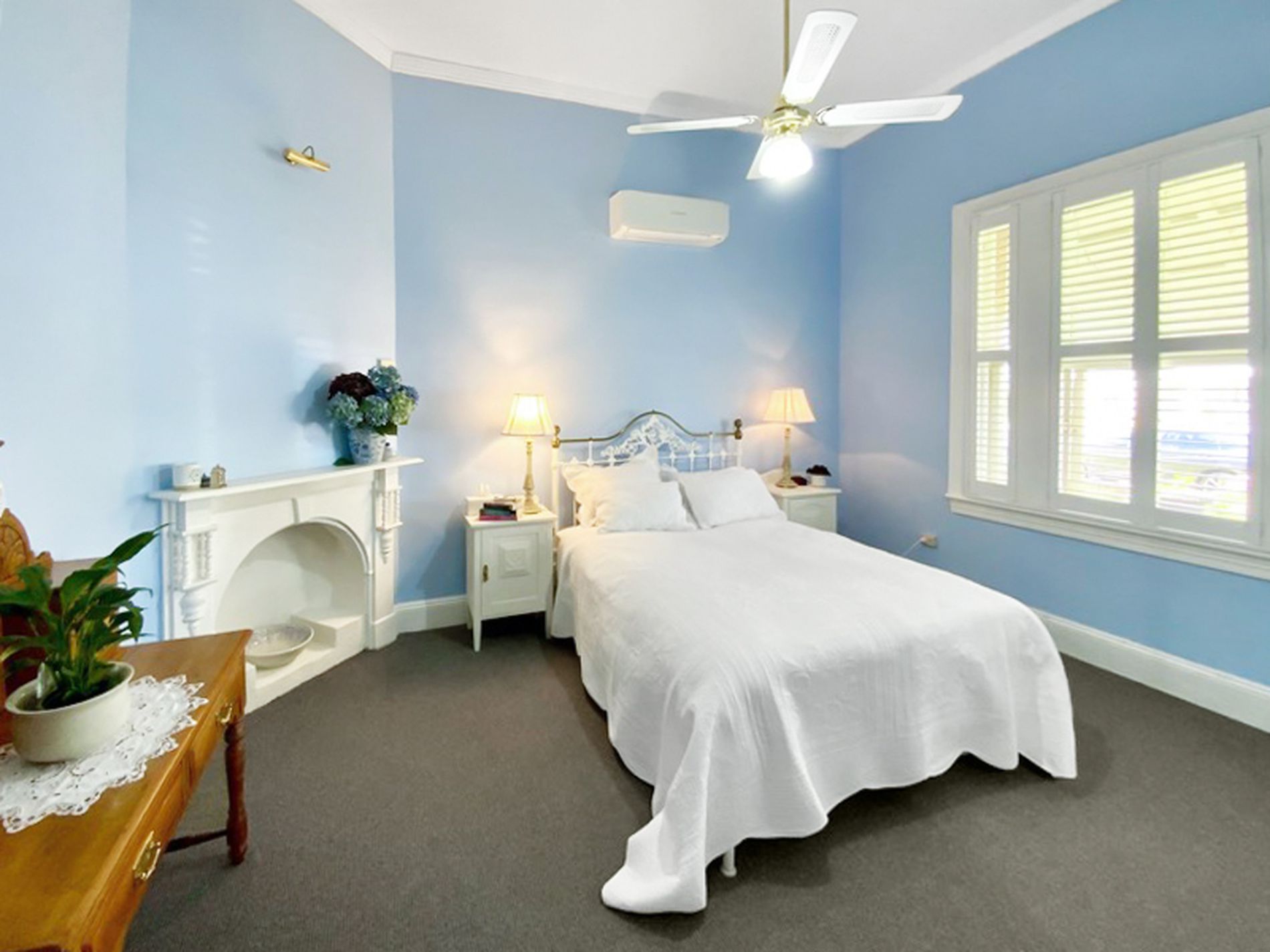 All three bedrooms are spacious, each appointed with split system air conditioning, ceiling fans, and plantation shutters for year-round comfort. The living room is warm and inviting, featuring an original fireplace with gas insert, split system, and ceiling fan.