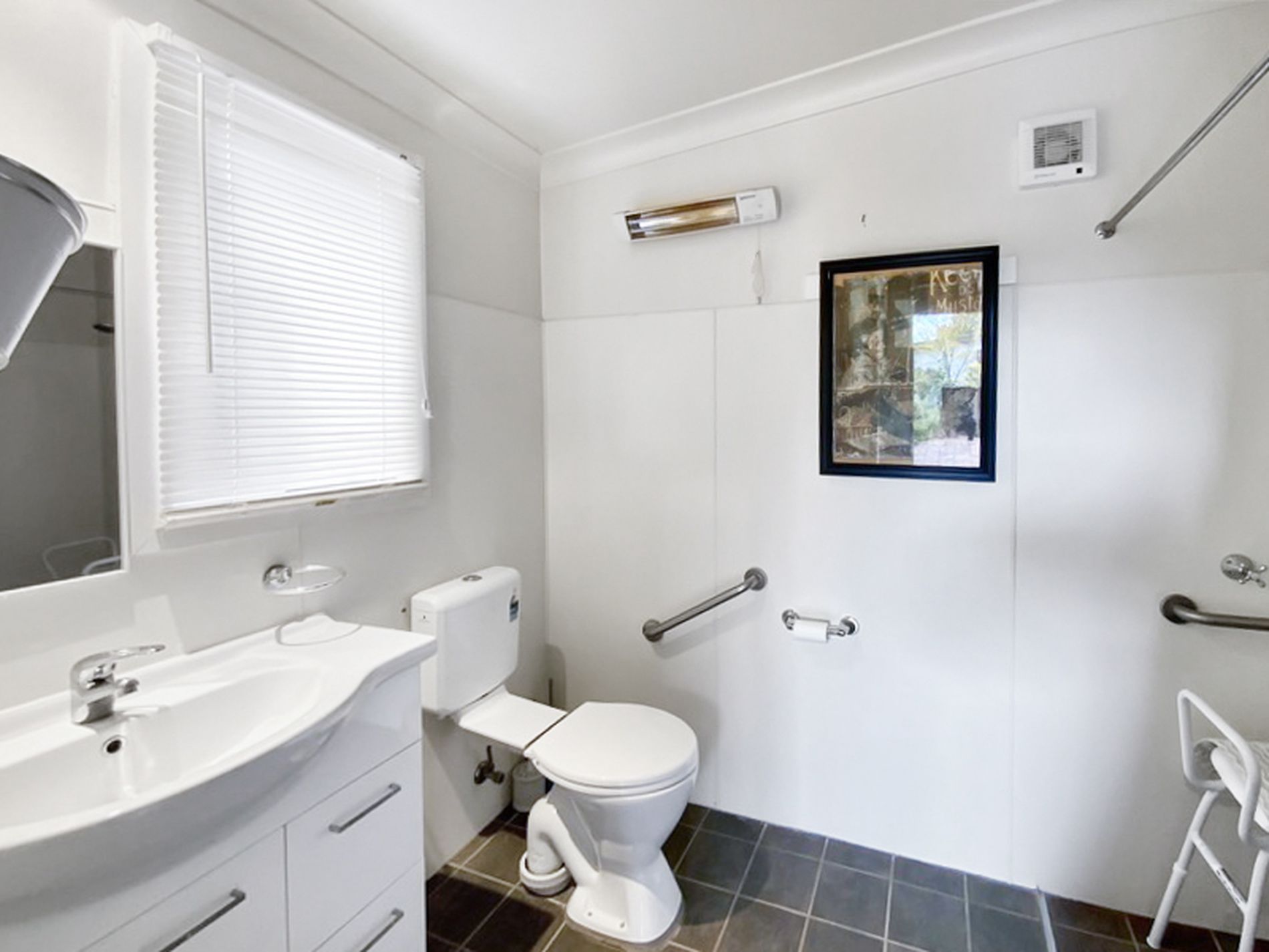 At the rear, a sunroom wraps around the home, creating a light-filled second living space that flows to the dining area and a versatile office or playroom. With its prized northerly aspect, this entire zone is bathed in natural light and enhanced by a cosy wood heater. The rear also houses a practical laundry with the bonus of a disabled-access shower and toilet.