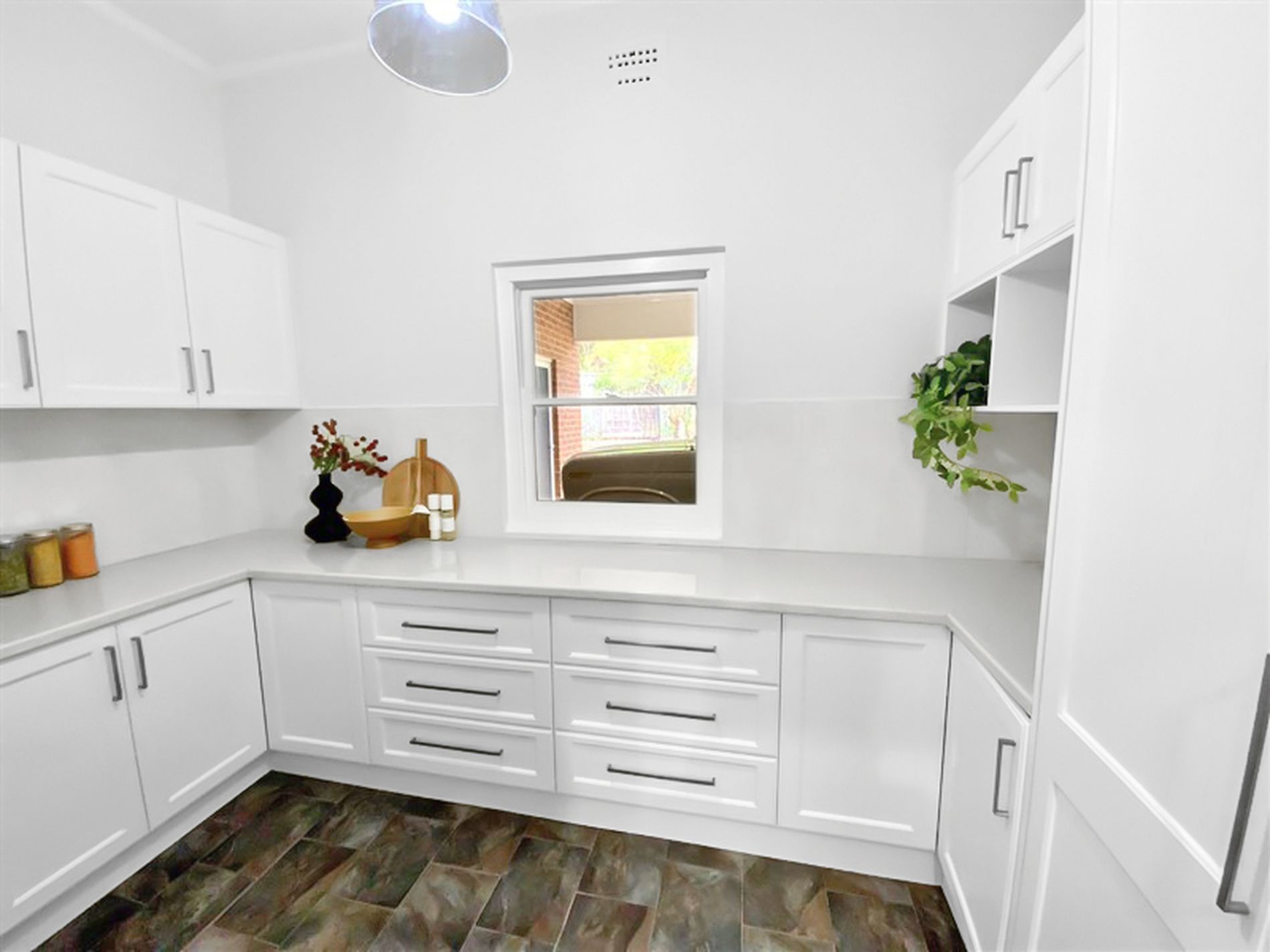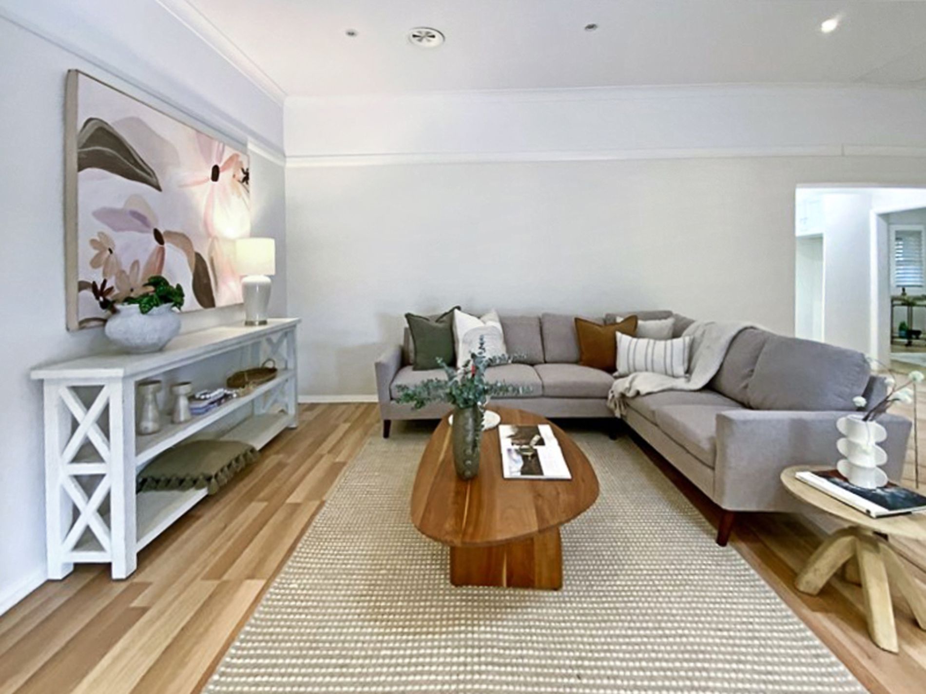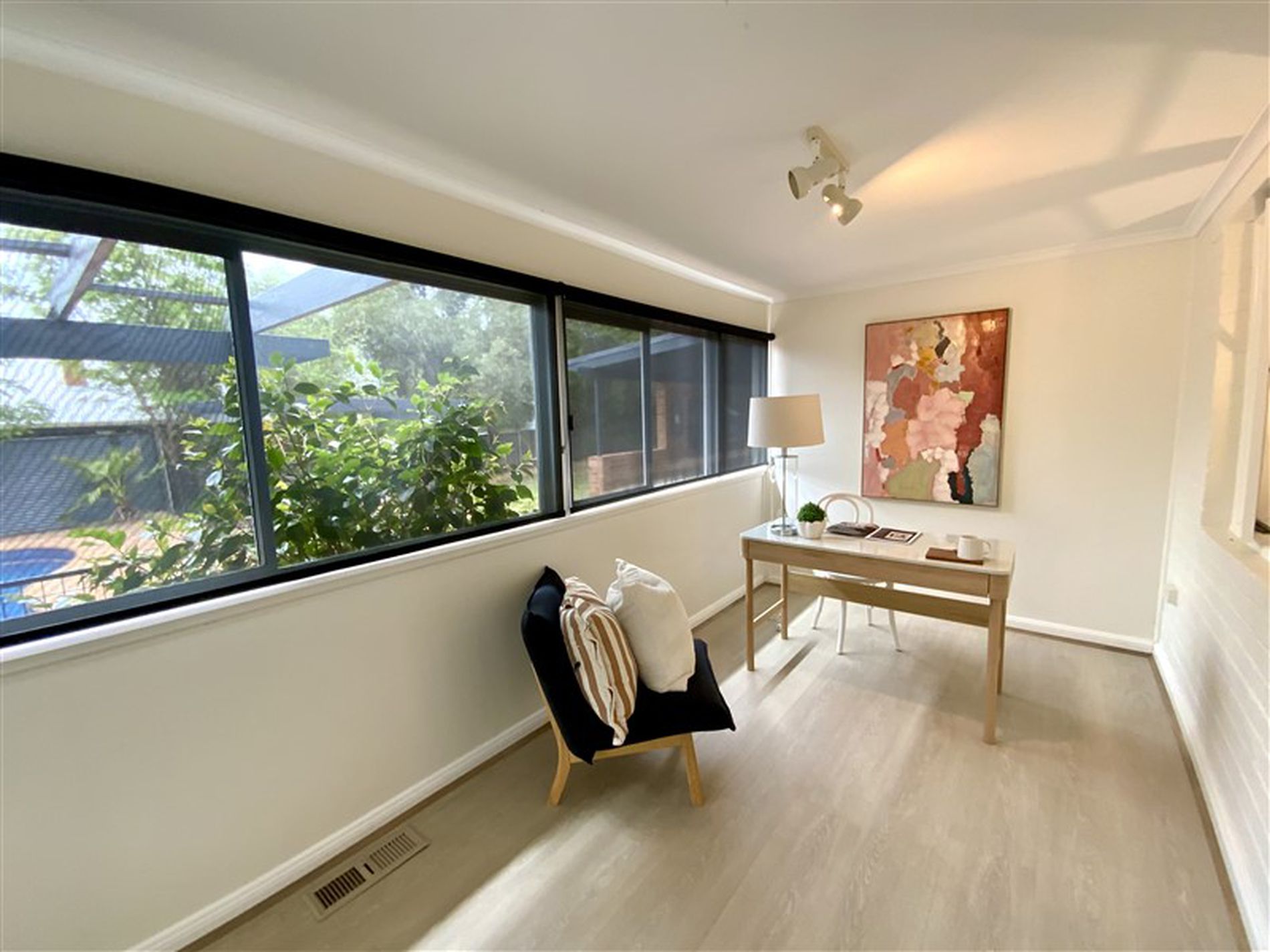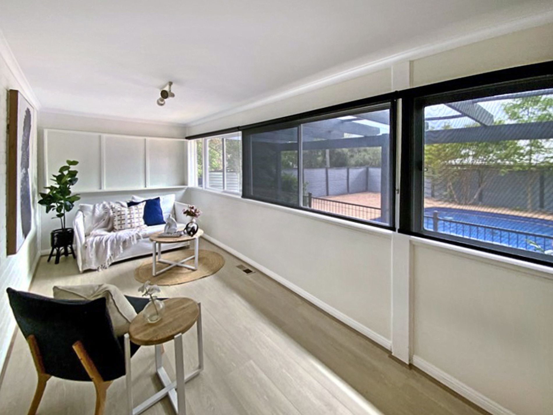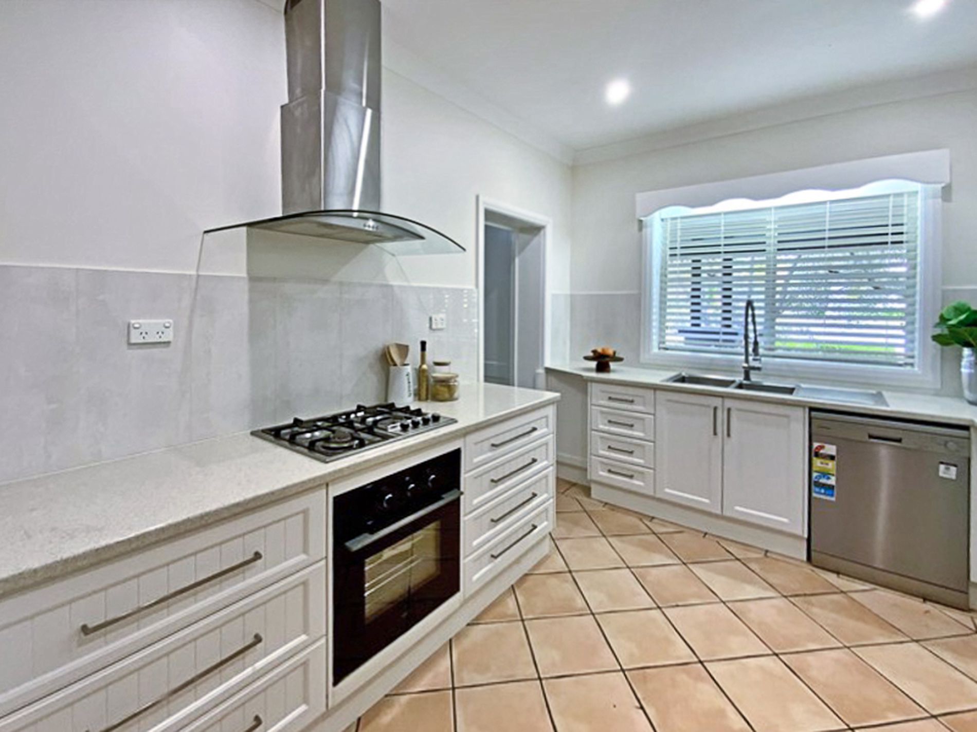 The stylish kitchen is equipped with a dishwasher, new under-bench oven, gas cooktop, and a large butler’s pantry—perfect for families who love to entertain. Plantation shutters throughout the home provide both sophistication and privacy.