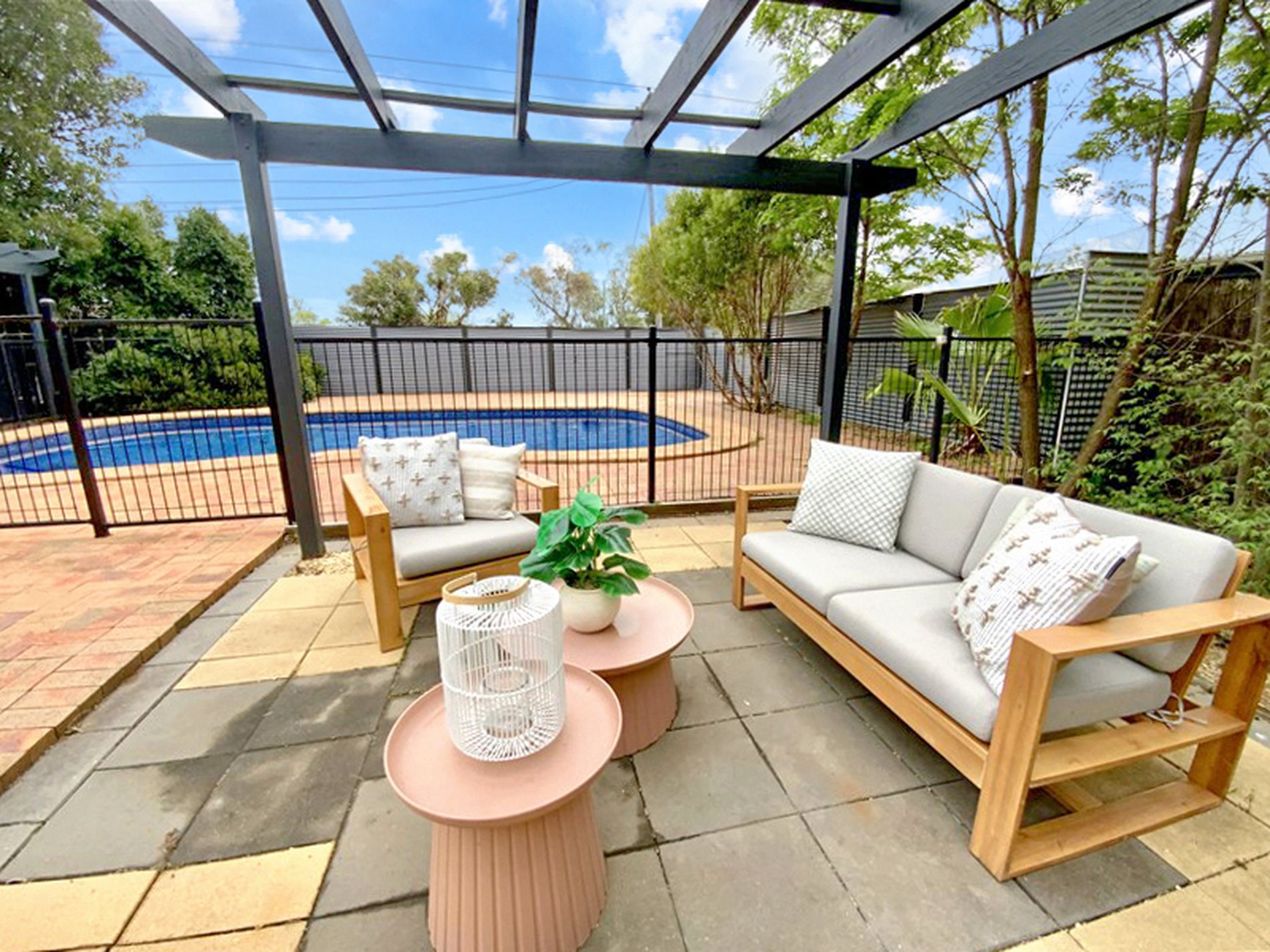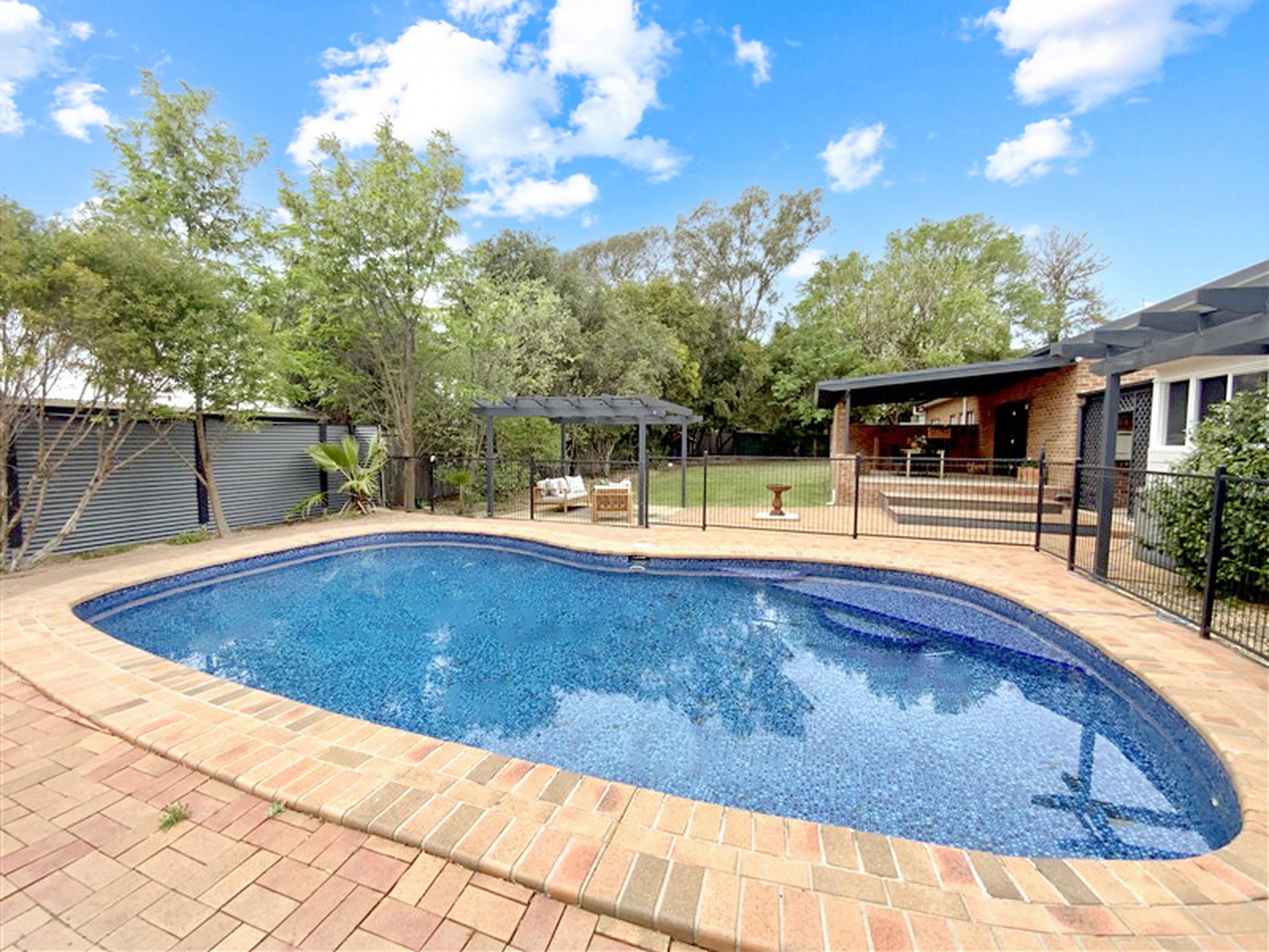 At the heart of the home is an expansive open-plan living, dining, and family zone that flows through French doors to a vast covered entertaining area overlooking the sparkling inground pool. A second paved pergola provides another inviting space to relax or entertain.