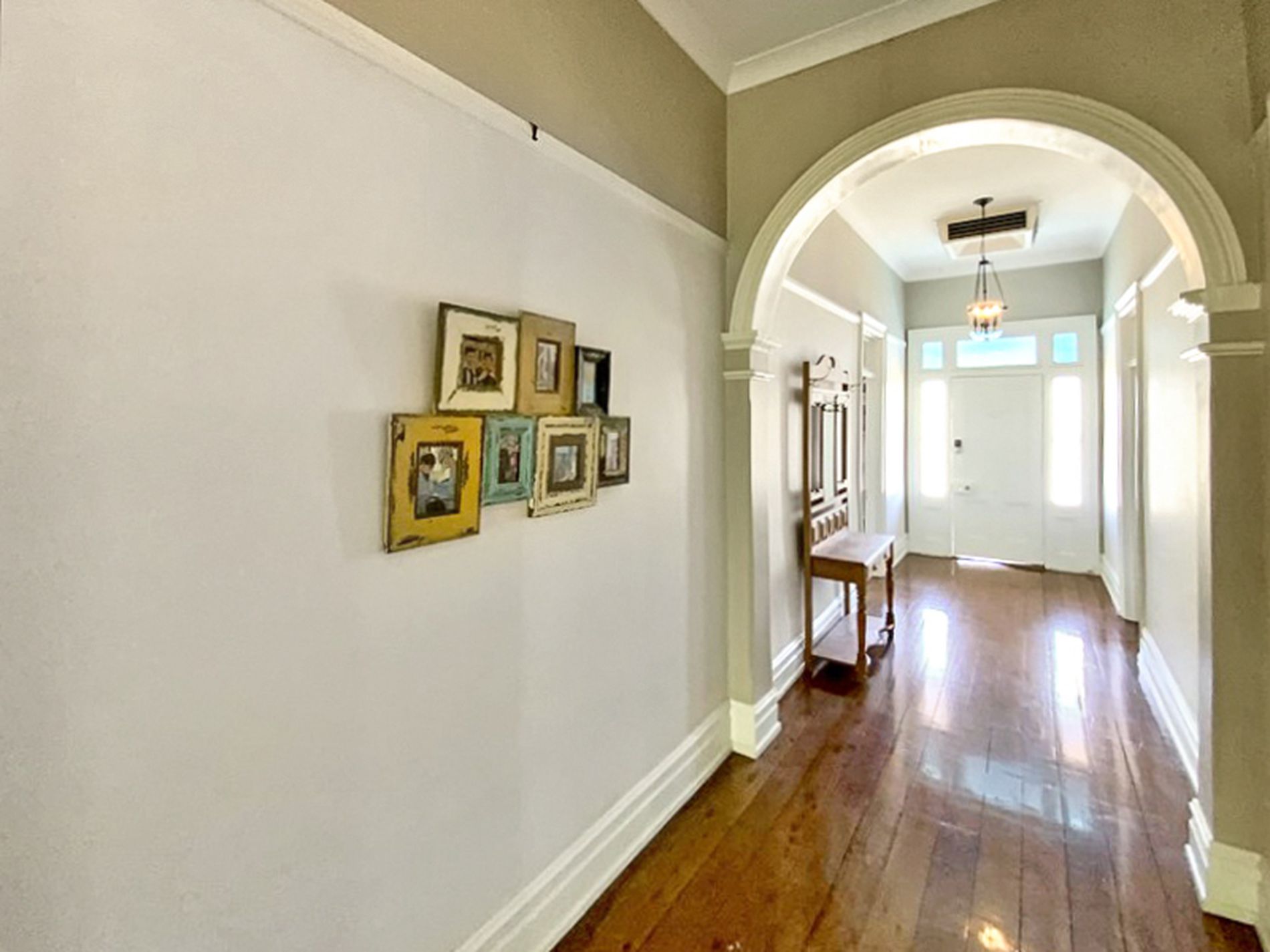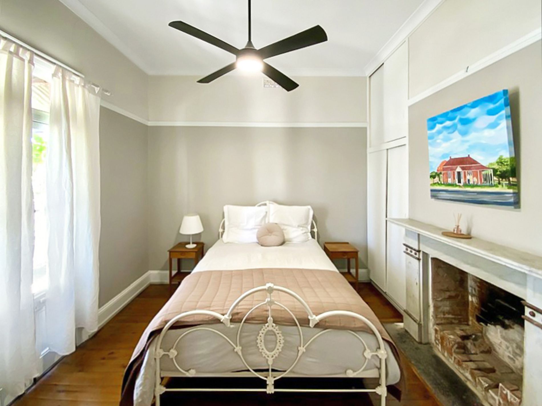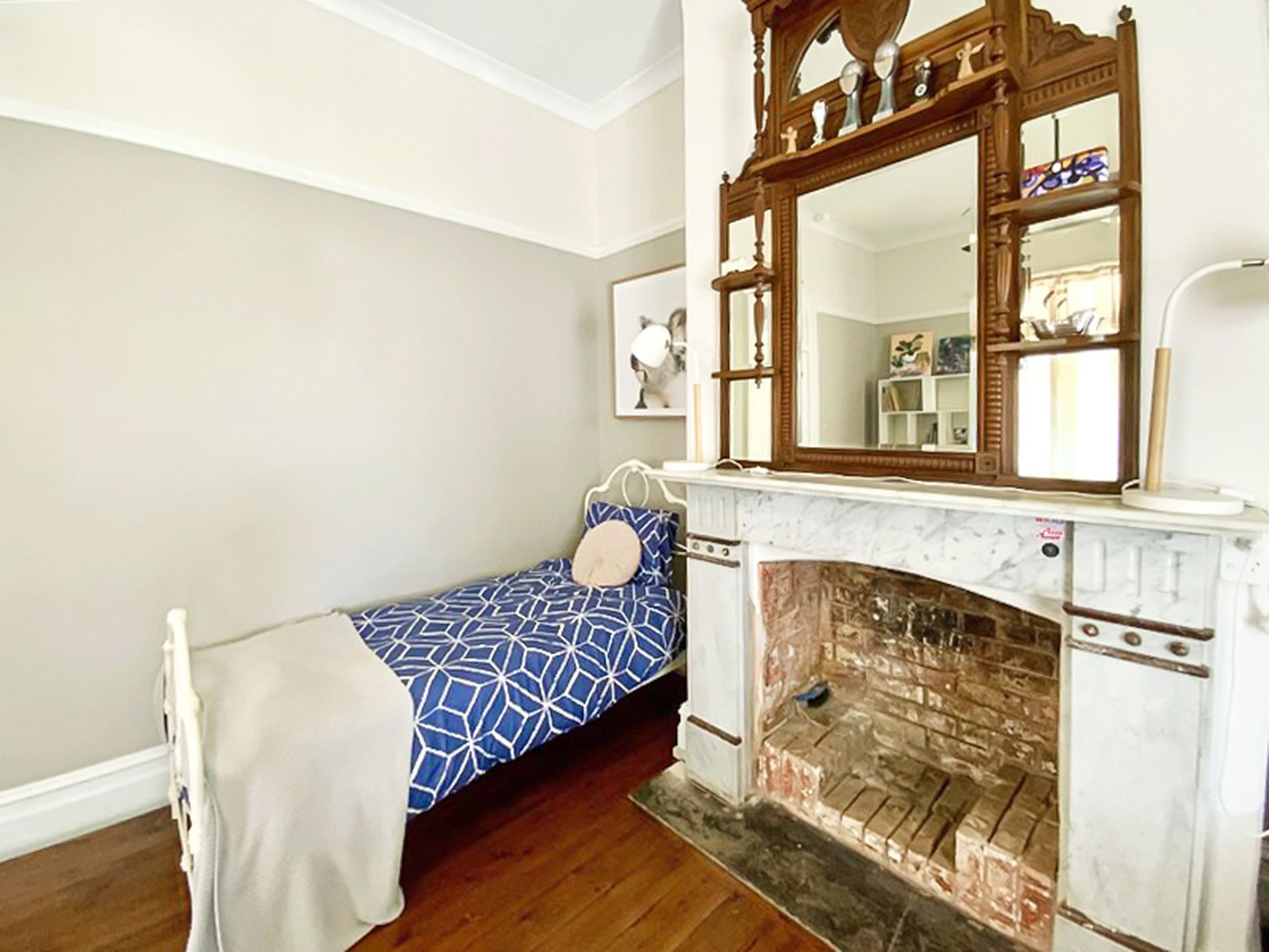 Set behind a classic white picket fence, the home’s timeless façade gives way to a beautifully updated interior. A wide central hallway introduces all the hallmarks of its era—ornate fireplaces, original timber floors, French doors opening to the wrap-around verandah, and decorative high ceilings.